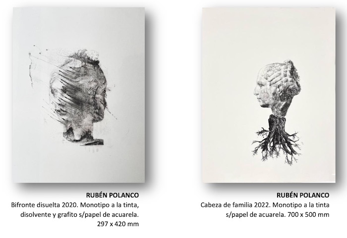 Rubén Polanco es un artista que acomete su quehacer desde la escultura y nos ofrece una serie de dibujos que en muchos casos forman parte de los preparatorios a modo de bocetos de sus piezas. En sus dibujos la naturaleza tiene una relevancia fundamental en forma de árbol en los que ensambla imágenes de figuras de factura clásica para emitir discursos medioambientales y poéticos. Sus obras tienen una interrelación por su interés por la filosofía, la ciencia, el origen del arte, el alma de las cosas, por el conocimiento. Sus piezas tienen en muchos casos una factura instalativa en cuanto a la representación y en los que los planteamientos artesanales adquieren importancia muy significante.
