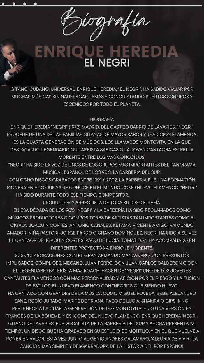 Este martes 13 de febrero, a las 21 horas, el teatro El Albéitar acogerá un concierto de Enrique Heredia ‘El Negri’, con la colaboración especial de Andy Bao, Maka y José María Cortina.