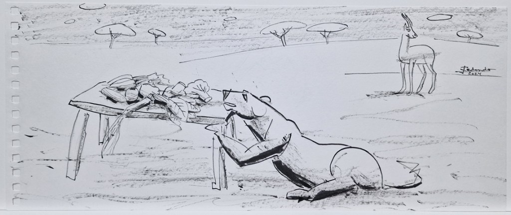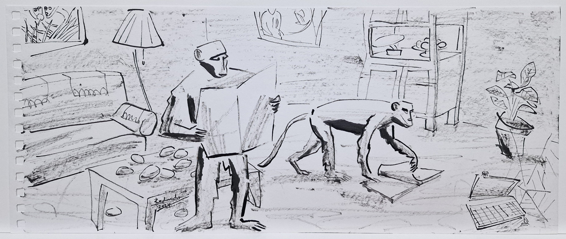 “El Bosco, Goya, los iluminadores medievales, los creadores de antiguas mitologías entre otros quizás abandonaron el antropocentrismo y comenzaron la creación de una gigantesca partitura musical de mundos diferentes pero conectados entre sí. Sin olvidar, que a cada propiedad de una especie viviente corresponde otra de su mundo circundante, como recuerda von Uexküll. En la pandemia la zoodiversidad amplió territorios. Esto es una propuesta de trazos y manchas con tinta para ampliar territorios en un diálogo entre seres sintientes y la naturaleza”. Así explica José Francisco Redondo las obras que presenta en Camarote Madrid.