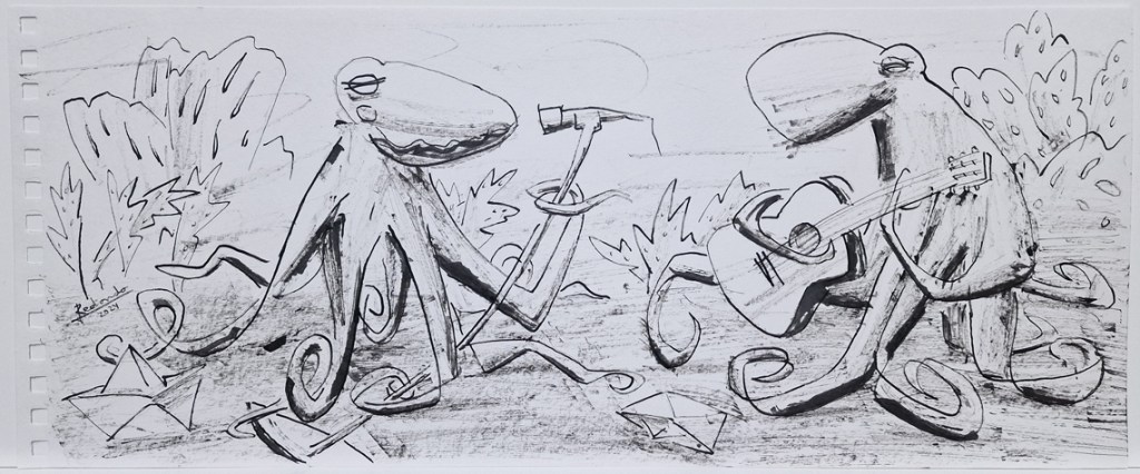 José Francisco Redondo cuelga este miércoles 3 de abril en la taberna leonesa Camarote Madrid un conjunto de obras pertenecientes a su serie “Animalario y Convivientes”, en la que reflexiona sobre la zoodiversidad con trazos y manchas de tinta. La inauguración será a las 12:30 horas.