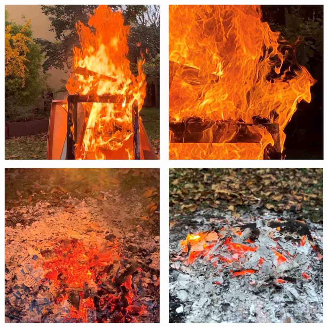 «La presente muestra parte de una acción, a modo de performance, a través de la quema de los últimos cuadros para dar punto final al transcurso de su producción artística. A través de la hipnótica fuerza del fuego de la hoguera, trata de eliminar cualquier vestigio que le ate a la tierra, y conseguir la disolución total, para fundirse con el absoluto en un acto de trascendencia».