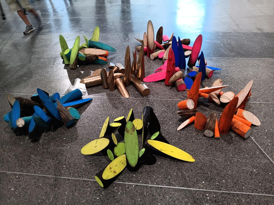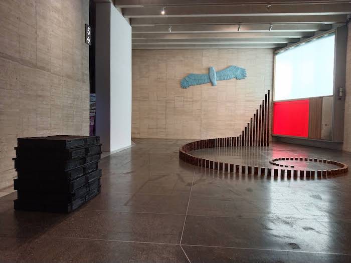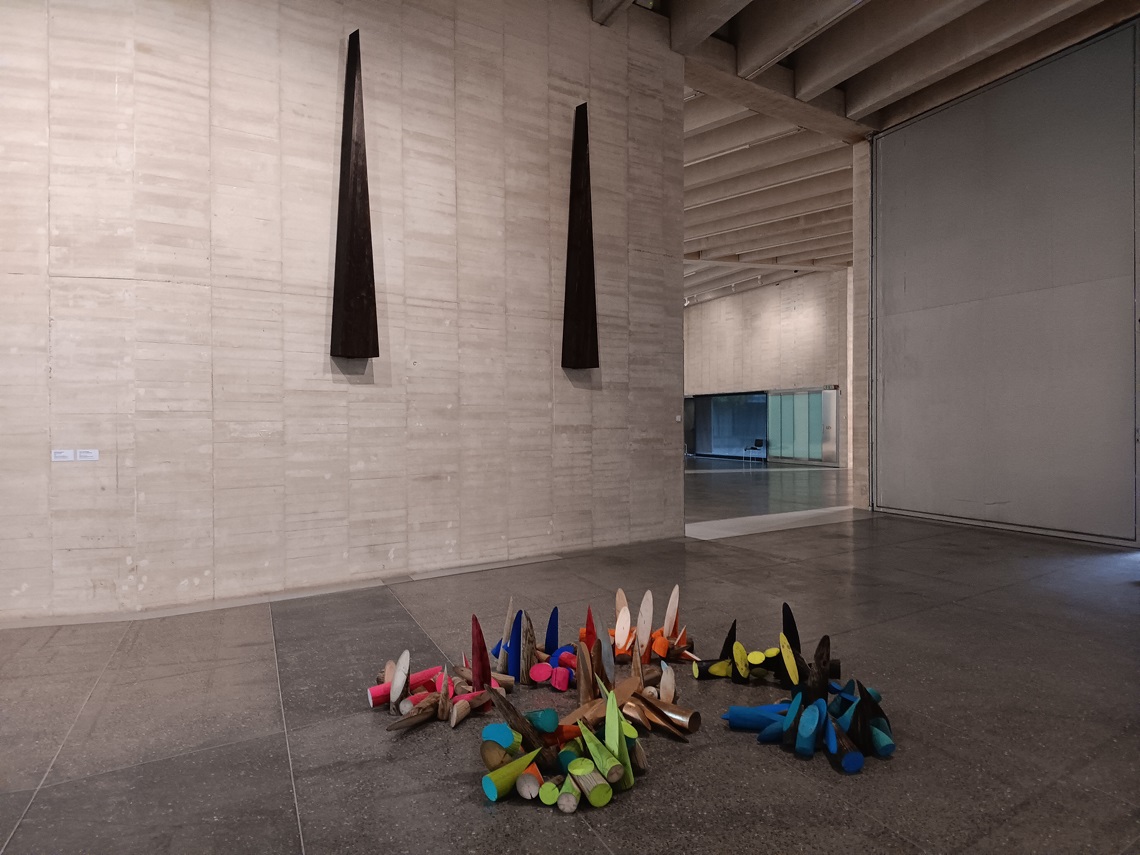 Pero es que también algunos de los dibujos están hechos sobre obras anteriores suyas que ha vuelto a pintar encima. O la serie `Las Coronas’ que está también realizada con restos de madera de otras obras que presenta en esta amplia muestra individual. Una poética de la extinción que apunta a los residuos que producen los habitantes de la Tierra y a los que alude el número del título de la exposición.