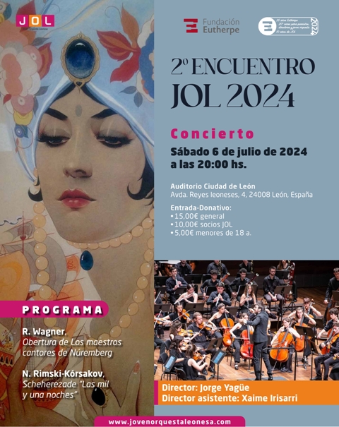 La Joven Orquesta Leonesa (JOL), que este 2024 celebra su Xº Aniversario, se constituye en 2004 como asociación, al amparo de la Fundación Eutherpe como principal promotora. Con sede en León, da cabida a instrumentistas de la región y comunidad, pero también acoge a participantes de todo el país que quieran formar parte de esta experiencia de aprendizaje y convivencia.