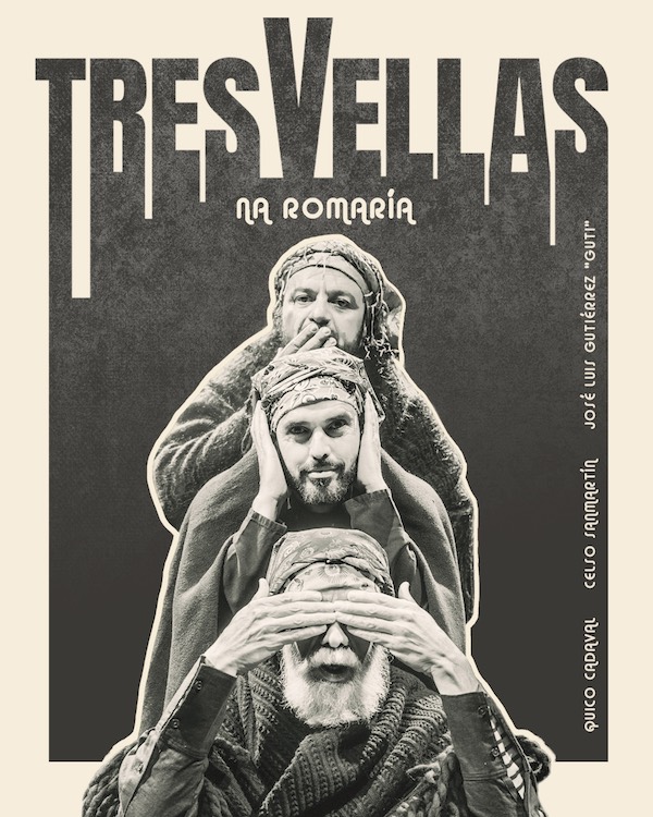 En 2023 regresaron las TRES VELLAS con un nuevo repertorio: TRES VELLAS EN LA ROMERIA. «Salimos del mundo del trabajo y buscamos en las memorias de las vellas los días gloriosos de romerías y fiestas, los bailes, los milagros, las devociones, los exorcismos, las empanadas y los melindres, el vino joven y la caña brava…» Las TRES VELLAS lían a la cabeza sus más hermosos paños rameados, para salir a bailar las muiñeiras, jotas y bailes charros en los “turreiros” de las fiestas. El repertorio se compone de todo lo que rodea al mundo estival de las romerías: milagros, romances, ofrendas devotas, relatos humorísticos, un mundo en el que se mezcla la superstición y el fiestero escepticismo. Un viaje equidistante a los tiempos de “Dios es bueno, pero el Demonio no es malo”. Un repertorio en el que se juntan las miradas lacrimosas de las procesiones con los pies encallecidos de los bailes. Parece un mundo olvidado, pero as TRES VELLAS regresan para contarlo con la misma frescura como si fuese ayer. El espectáculo fue estrenado en octubre de 2023 en la Rúa dos Contos de FIOT (Festival Internacional Outono Teatro de Carballo)