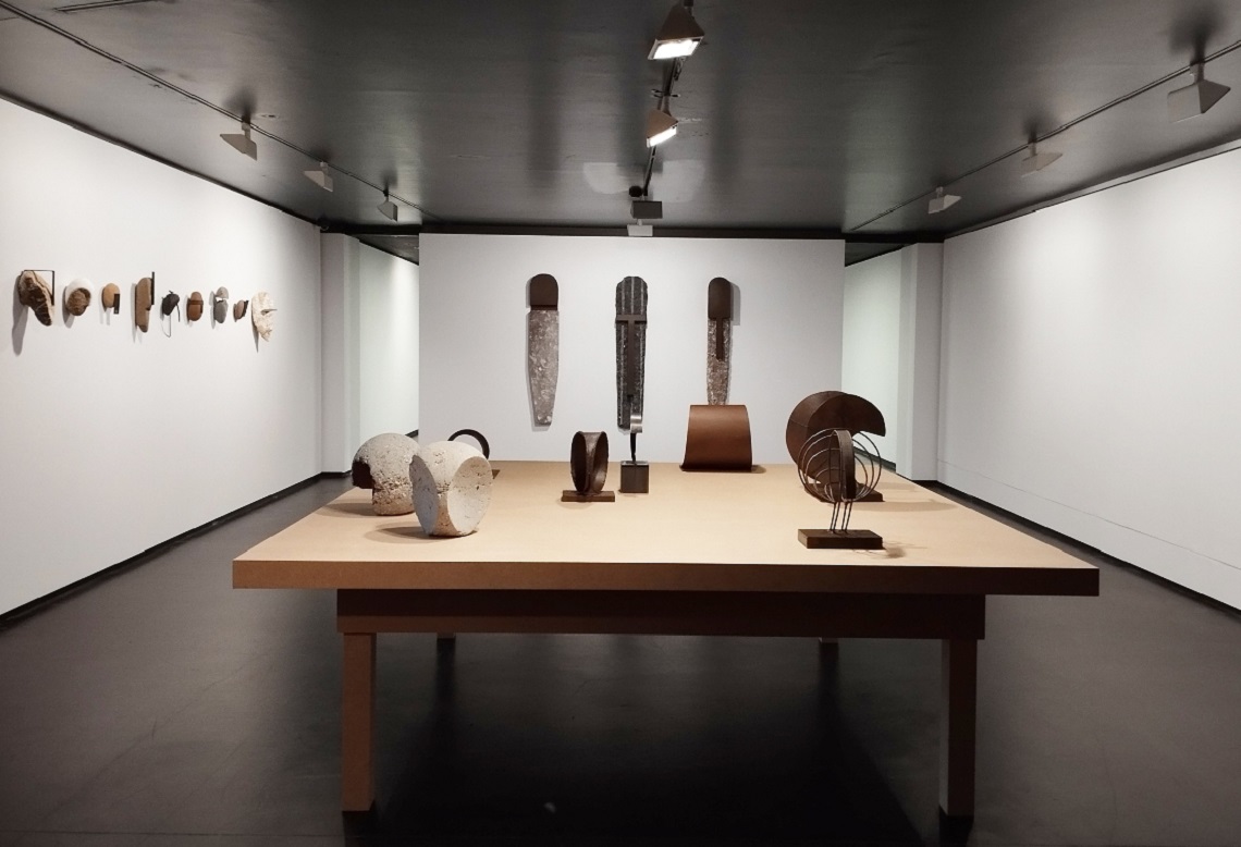 La exposición en el Museo Oteiza la integran 42 esculturas de distintos formatos, acompañadas de 4 dibujos vinculados con su investigación. Los materiales que articulan su imaginario plástico proceden de la tierra, como la piedra, el hierro, el barro o el yeso, que transforma a través del gesto escultórico y los dota de otro significado.