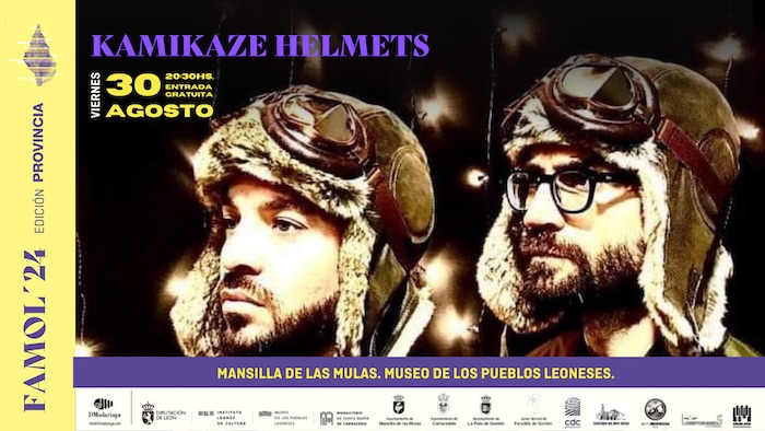 Este viernes 30 de agosto, a las 20:30h, el escenario del Museo de los Pueblos Leoneses será testigo de la potente actuación de «Kamikaze Helmets». Este dúo, formado por Gabri Casanova y Kike Parra, nos ofrece una mezcla explosiva de rock experimental y virtuosismo instrumental. Gabri Casanova, conocido por su talento como teclista y organista, ha acompañado a gigantes de la música española como Loquillo, Iván Ferreiro y Luz Casal, y junto a Kike Parra, destacado cantante y batería, promete una actuación arrolladora que no dejará indiferente a nadie.