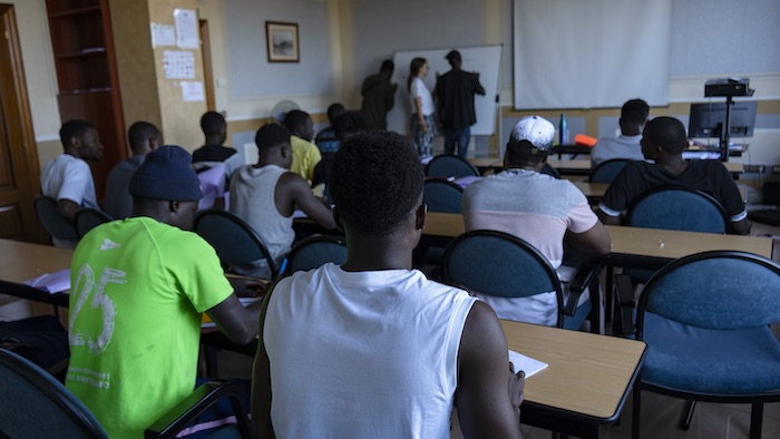 En 2019, el año previo a la pandemia de Covid que puso en jaque a todo el mundo, el senegalés Emile Djirú emigró hacia Marruecos, donde vivió tres años hasta conseguir recursos para costearse la embarcación en la que llegar a España. Un viaje más que premeditado que no por ello resultó sencillo. Y es que, aunque se echó al mar a bordo de una zodiac, recuerda el trayecto de tres días desde Tan Tan como un hecho “muy traumático”, ya que no contaba con nada que llevarse a la boca, además de haberse encontrado con unas condiciones muy adversas durante una dura travesía en la que no pocos subsaharianos pierden la vida. Él llegó a la orilla, pero se encontró con muchas barreras. Entre ellas la del idioma.