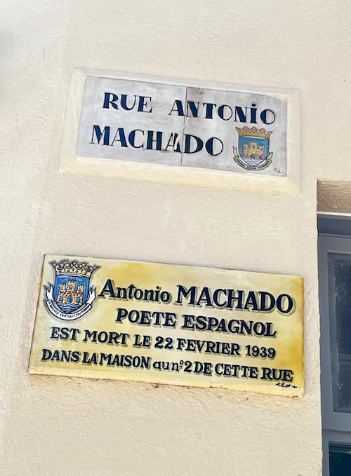Dormimos cerca de Collioure. Amaneció un día maravilloso. Manolo Sierra se puso a pintar en su cuaderno mientras nos agrupamos todos y enseguida pusimos rumbo a la tumba de Antonio Machado. La distancia que nos separaba del cementerio fue testigo de una extraña sensación. Una calle estrecha con muros de piedra y una galería de arte a nuestra izquierda nos dibujaba el camino hacia una puerta de hierro semiabierta que flanquea la entrada al camposanto. Manolo Sierra la abrió y le seguimos.