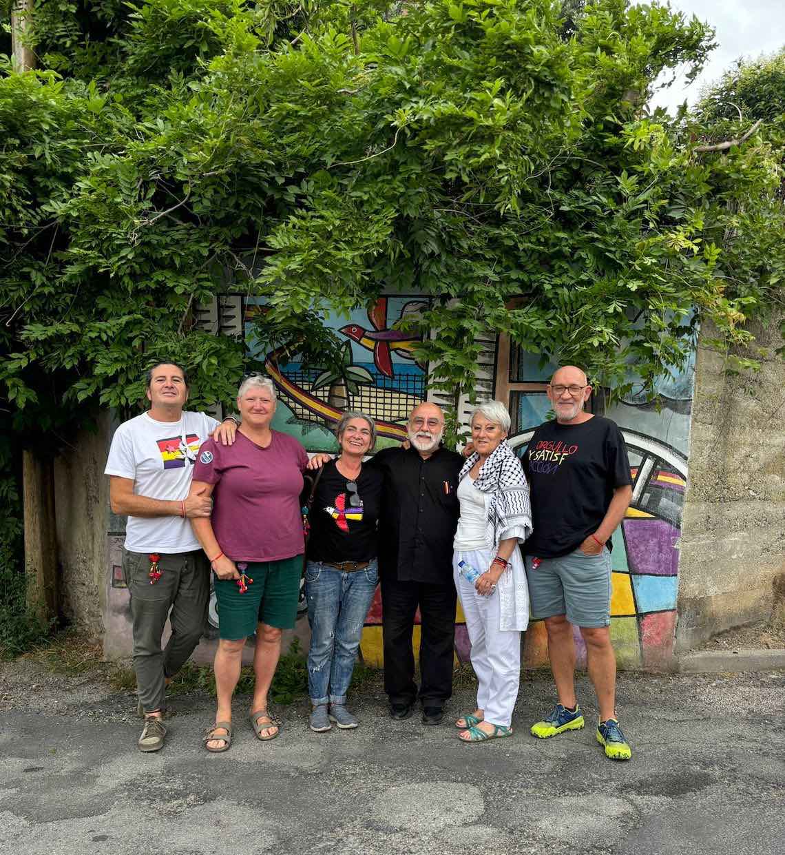 A continuación nos presentó al resto del grupo y lo que hacía escasos minutos era una pared tapada con el follaje de un árbol se había convertido, gracias a la habilidad y la fuerza del resto de acompañantes, en lo que sabíamos que era, un mural de Manolo en perfecto estado de conservación. Más tarde, llegarían los saludos a los miembros del Partido Comunista Francés (PCF) que habían acogido a Manolo, Chusa y Josema en anteriores encuentros.