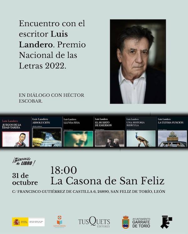 Cartel Luis Landero San Feliz de Torío 28 de octubre de 2024 Return to: Marta Sanz y Luis Landero se apean en San Feliz de Torío para hablar de sus librosMáxima resolución (600 × 743) Image navigation Previous Image