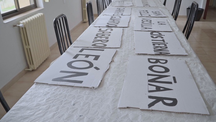 ● Se han creado pancartas con los nombres de los pueblos por los que recorre el tren. Se anima a los participantes a agruparse por pueblos para mostrar la unión de toda la cuenca del Torío en esta reivindicación.