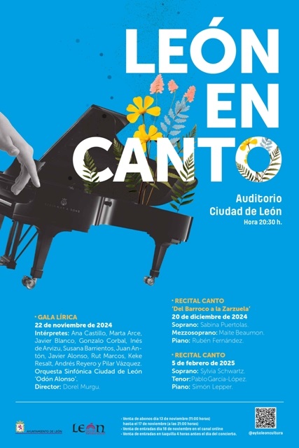 Sylvia Schwartz y Pablo Garcia-López, con Simón Lepper al piano, ofrecen el último concierto de este ciclo formado por tres recitales de canto en el Auditorio de León (22 de noviembre, 20 de diciembre y 5 de febrero) en los que ha participado la Orquesta Sinfónica Ciudad de León Odón Alonso, e intérpretes de música lírica de primer nivel como Sabina Puertolas, Maite Beaumon y Rubén Fernández.