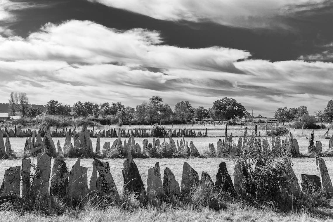 El apartado fotográfico, corresponde a Miguel Núñez. Las fotos ponen en imagen, no ilustran, la atmósfera, la tierra en la que viven esos personajes, en un blanco y negro que aleja un poco el efecto espejo de lo que se muestra. También podría decirse que los relatos ponen en palabras lo que sugieren las imágenes. Lo que el espectador ve, lo que el lector lee, no pretende ser la realidad tal cual; hay un tamiz, una mirada, una escritura por las que pasan el origen de las fotos, de los relatos. La portada es ya muy indicativa de ello. Sobre un cauce seco, pedregoso, con enormes bloques de granito, se ha construido un puente. Pilotes y enormes vigas de hormigón. Lo cruza una manada importante de vacas. En la primera parte del libro hay treinta y nueve fotografías que muestran animales, caminos, arroyos, ruinas, palomares, tijeras de esquilar, un cementerio lleno de cruces de hierro, vecinos y vecinas de esa tierra, todos mayores, a menudo acompañando a vacas, ovejas, burros, perros… Hay un cuidado en mantener la dignidad de todo lo que aparece, y al tiempo, es inevitable una sensación de ruina, de final de época. La primera foto es de un reloj, embutido en sillares, que marca las doce, que es una hora de tránsito, entre un día y otro, o entre la mañana y la tarde, un cambio en el tiempo. La última fotografía es una calavera de vaca usada como máscara por un paisano que apoya las manos en una cachaba y muestra un reloj de pulsera. ¿Un deseo de ser animal?