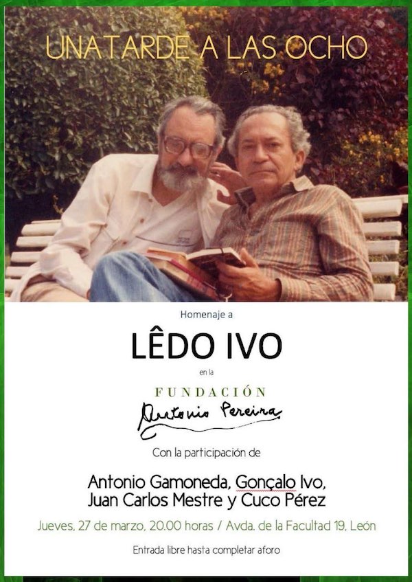 En el acto participarán amigos de ambos como Antonio Gamoneda, Juan Carlos Mestre, que recitará poemas de Ivo acompañado al acordeón por Cuco Pérez, o el hijo de Lêdo, Gonçalo Ivo, entre otros.