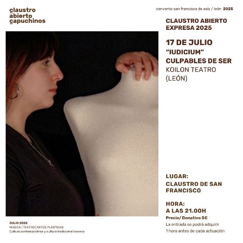 Este jueves 17 de julio el Claustro de San Francisco (León) acoge el tercer espectáculo del ciclo Claustro Abierto Capuchinos. En esta ocasión, la propuesta de una joven asociación, Koilón Teatro, con la obra “IUDICIUM” culpables de ser. A partir de las 21:00 horas. La entrada se podrá adquirir una hora antes de cada actuación con un precio/ donativo de cinco euros.