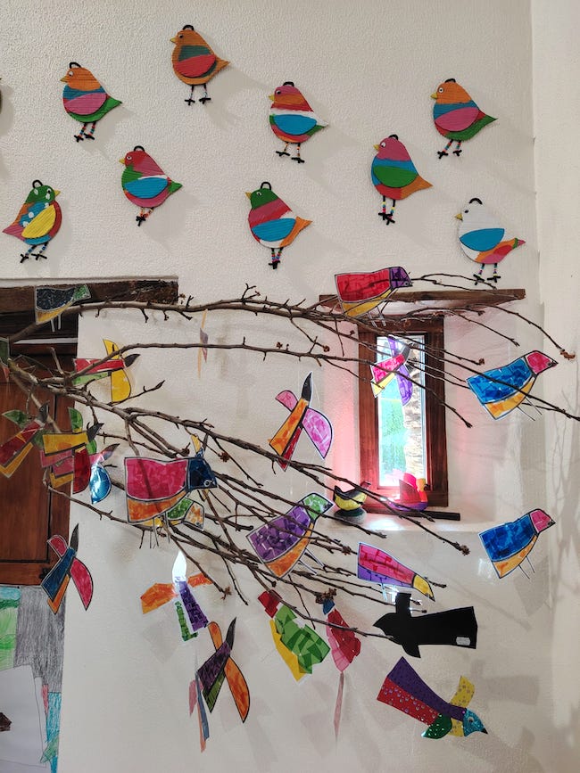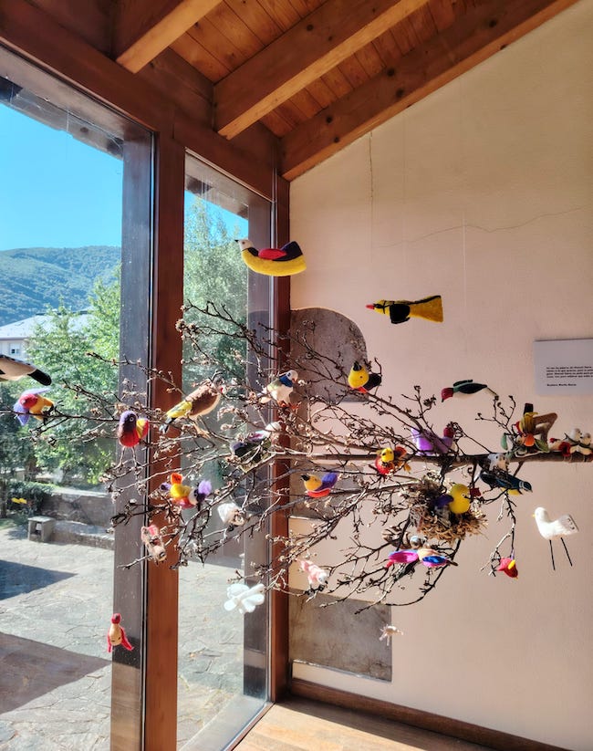 La participación de los alumnos de colegios e institutos de los valles que también quieren elogiar la dilatada trayectoria de Manuel Sierra “consiste en valerse de los símbolos que él ha utilizado de forma más recurrente, como son los pájaros, para recrear ese tipo de obra a base de diferentes técnicas y materiales reutilizables”, informa el profesor Vega.