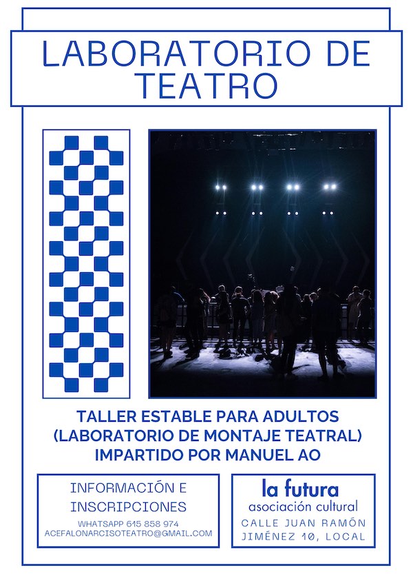 - Para más información contacta con Manuel a través del WhatsApp 615 858 974 o a través de la dirección de correo electrónico acefalonarcisoteatro@gmail.com