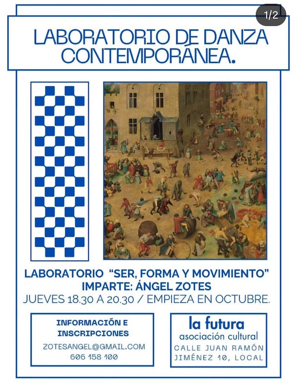 Los jueves por la tarde Ángel Zotes propone un espacio de movimiento y encuentro en formato de laboratorio de creación “ser, forma y movimiento”