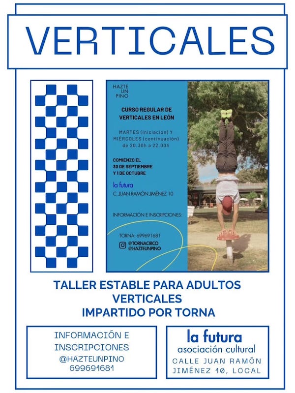 Este año también siguen haciendo verticales en La Futura. Habrá dos grupos: uno para novatos y otro para los que llevan ya un ratito patas arriba.