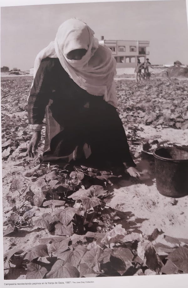La exposición arranca en 1948, el año de la Nakba, la expulsión de 700.000 palestinos de su tierra, y llega hasta nuestros días. Las imágenes abarcan temas diferentes y son de técnicas y estilos también disímiles, como corresponde a un conjunto de procedencia múltiple, donde muy pocos autores son profesionales. Todas ellas no obstante son testimonios especulares de una realidad que se muestra sin afectación ante las cámaras.