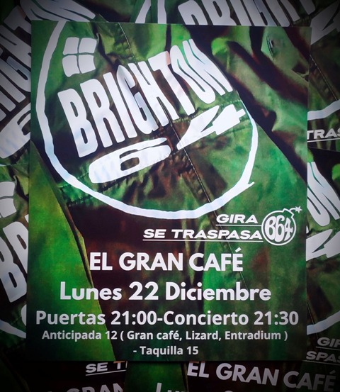 El próximo lunes 22 de diciembre la banda barcelonesa Bridgton 64 ofrecerá su último concierto en la capital leonesa. Será en El Gran Café, dentro de su gira de despedida y con el disco “Se traspasa”, que cierra su dilatada trayectoria. Es el adiós definitivo del, para muchos, primer grupo mod español por imagen, estilo y talante. El concierto comenzará a las 21:30 con apertura de puertas a las 21:00 horas.