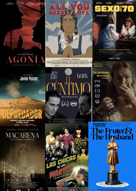 La relación de los cortometrajes que se proyectan este jueves en el Teatro El Albéitar, algunas de ellas premiadas en festivales internacionales, son Agonía (20’), de la actriz y directora Eulàlia Ramon; El céntimo (5’), de Marc Pejó Forés; Sexo a los 70 (16’), de la actriz, presentadora y directora Vanesa Romero; Las chicas de los martes (10’), de Aranzazu Gaspar; Depredador (7’), de Javier Fesser; The Fruter and the Husband (8’), de Nacho Bárcena Martín; Macarena, una comedia espiritual (16’), de Nazaret Beca y Rodrigo Sancho; La paciente desconocida de Freud (7’), de la actriz y directora Antonia San Juan; y All You Need is Love (13’), de Dani Cruz.