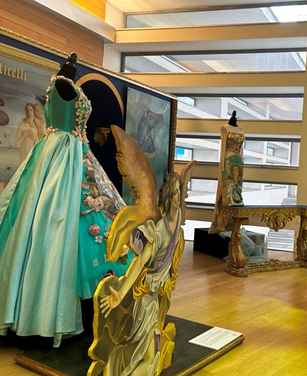La muestra reúne instalaciones de gran formato con estructuras volumétricas policromadas, vestidos-cuadro pintados al óleo, auténticas piezas de arte en movimiento, obras sobre tabla y complementos artísticos, además de recursos audiovisuales y cartelas explicativas. Incluirá una experiencia performativa con un desfile acompañado de danza, en coherencia con el carácter escénico e inmersivo del proyecto.