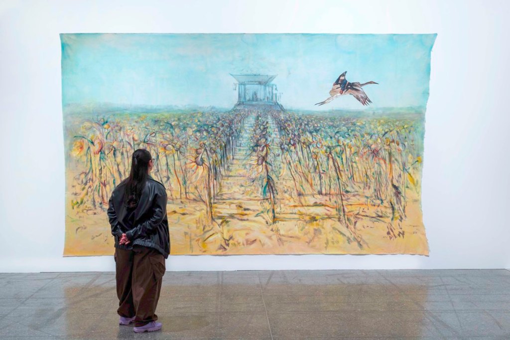 El vínculo entre humanidad y naturaleza en un contexto marcado por la crisis climática es también el eje del cuadro de gran formato del pintor segoviano Luis Moro “Tiempos modernos” (2024-2025), que formó parte de su exposición “El bramido de la Tierra” (2025).