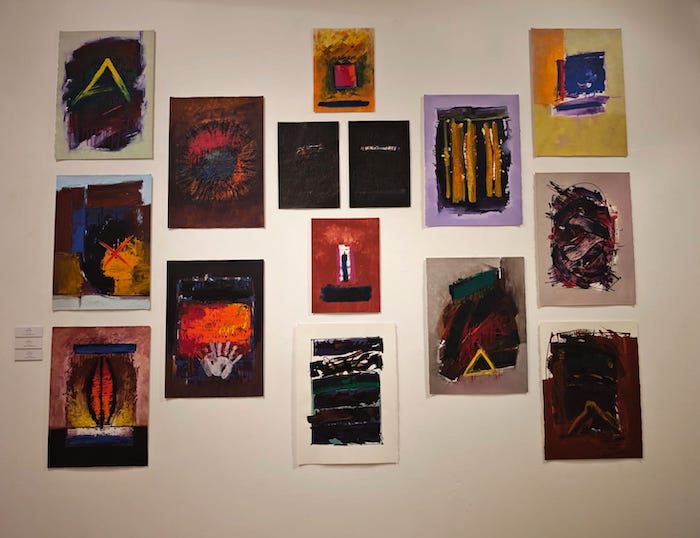 En el territorio de la pintura, entendido en sentido amplio, la exposición cuenta con algo más de ciento setenta obras realizadas con técnicas clásicas, mixtas y por ordenador, formalizadas o transferidas sobre soportes muy variados, como lienzo, táblex, aglomerado, cartón, papel o materiales industriales y reciclados. Las obras con sistemas clásicos arrancan en 1956, con sus dibujos para la revista ‘RC’ cuando cursaba estudios de Medicina en Valladolid, y finalizan con piezas de los inicios del siglo XXI, en un territorio pictórico pletórico y esplendoroso del gesto, el trazo y el color. A partir del año 2004 y hasta prácticamente 2016, son todas obras digitales generadas por programas informáticos y transferidas a diferentes tipos de soportes como el papel o el lienzo.