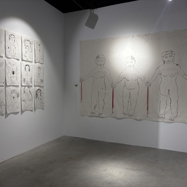 Aunque con trayectorias paralelas, las tres desarrollan prácticas diferentes. Reme Remedios es pintora y dibujante. Carmita Álvarez se dedica más a la instalación y al arte textil, mientras que Cathy Álvarez emplea técnicas mixtas que combinan fotografía, bordado y vídeo. “Yo trabajo con un montón de soportes y de técnicas, aunque lo que más me define es el dibujo y la pintura. Pero también lo textil, el objeto encontrado” asegura Reme.