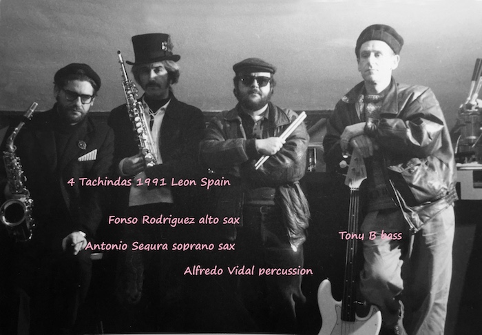 A finales de los 80, conoció en una jam al bajista inglés Tony Bowring, que vivía entonces en León, y Alfredo (esta vez a la batería), junto con los saxofonistas Toño Segura e Ildefonso Rodríguez, formaron con él Los Tachindas, un cuarteto polivalente con un desarrollo de los temas muy libre (con temas propios en su mayoría y algunas piezas de Ornette Coleman).