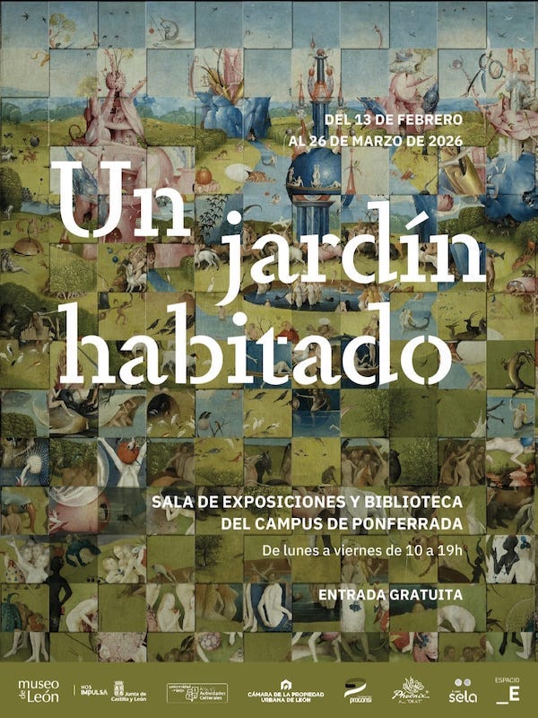 Hasta el próximo 26 de marzo se puede visitar en las salas del Campus de Ponferrada la exposición “Un jardín habitado”, un proyecto expositivo que articula una relectura colectiva y contemporánea de una de las obras capitales del arte universal: El jardín de las delicias, de Hieronymus Bosch (El Bosco), por parte de 91 artistas vinculados a León.