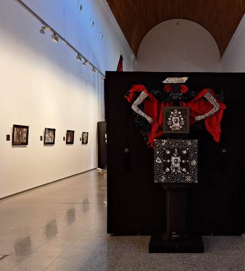 “La muestra se compone de una sinfonía de obras a modo de ballet que se despliega en una danza de técnicas diversas. Aquí, las fotopinturas, los collages analógico-figurativos sobre pinturas bidimensionales abstractas, las pinturas e instalaciones se convierten en ventanas al alma”, detallan sus autores, de un recorrido expositivo articulado esencialmente por el componente religioso.