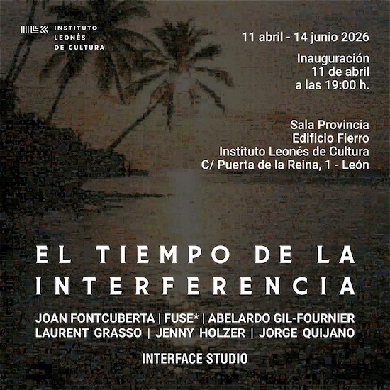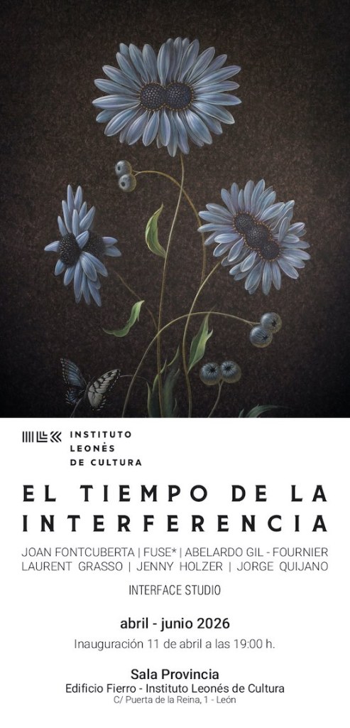 Joan Fontcuberta, el colectivo fuse*, Abelardo Gil-Fournier, Laurent Grasso, Jenny Holzer y Jorge Quijano son artistas de tres continentes que invitan, a través de la exposición colectiva «El tiempo de la interferencia», a detenerse y observar cómo nuevos lenguajes visuales y percepciones construyen la realidad que habitamos. Esta exposición internacional sobre «imagen, tecnología y percepción en la era de la saturación y la sobreinformación» se podrá contemplar en la Sala Provincia (Instituto Leonés de Cultura) del 11 de abril al 14 de junio de 2026.