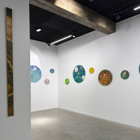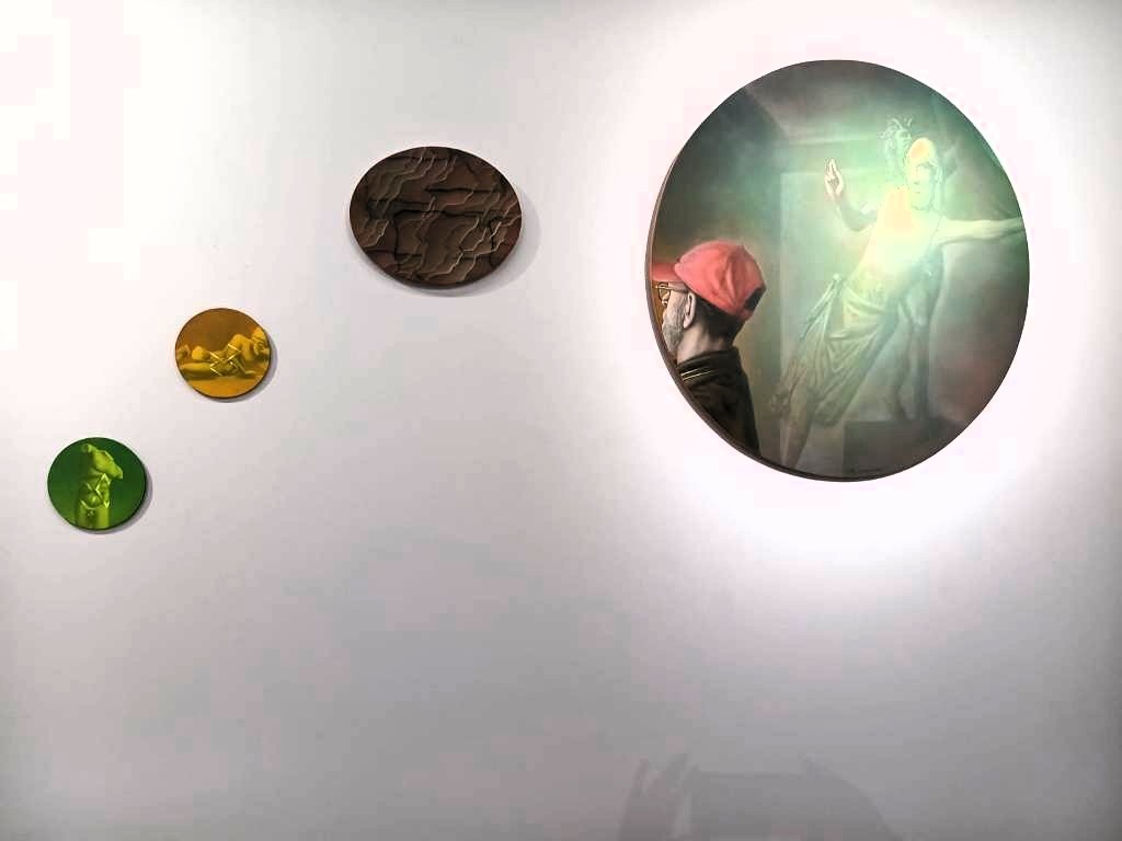 “Los formatos es la única licencia que me he dado de cambiar a lo largo de mi carrera. Hace unos años ya, con el calendario y tal, ¿te acuerdas? Sí, con el redondo, con el tondo. Eso fue en el año 2021”, asegura. Y es cierto que en esta exposición ha cobrado importancia. “He tensionado los formatos porque esta cosa de la espiritualidad te lleva a hacer alguna cosa con el formato, porque la técnica va a ser la misma, más perfeccionada, pero la misma. Te obliga, porque un formato es una cosa muy interesante. Entra por los ojos de una manera o de otra. Vertical, horizontal, tondo, redondo, tal, tal, tal, tal. Me he dado cuenta de que los he ido tensionando con los años. Y todo es, no por una cuestión pictórica como tal, sino por una cuestión filosófica, espiritual, religiosa. Tiene que ver con la creencia, con la elevación. He tardado sesenta años en saber ponerme en las manos de Dios y ha sido gracias a la enfermedad. Y tan tranquilo”.
