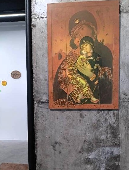 Entre estas 42 obras solo una escultura -Jardín cerrado- de 2022, en el que el artista guarda su universo privado, poblado de nubes, conchas, retablos de vírgenes bizantinas y de los apóstoles San Juan, San Lucas, San Marcos y San Mateo. Además de observadores como Dante, Luis Sáenz de la Calzada y Santa Teresa de Jesús. Todos ellos mediadores para adentrarse en la contemplación.
