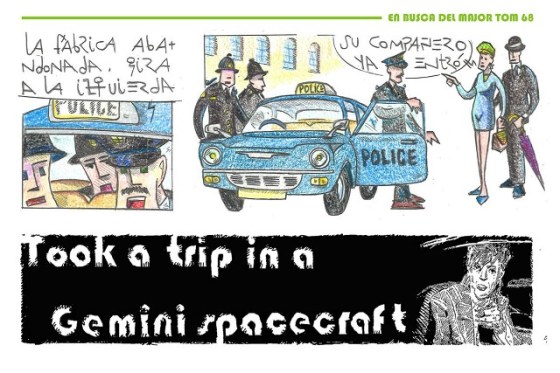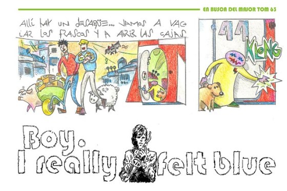 Tira 65 de “<b<En busca del Major Tom”, del dibujante leonés Alberto D. Nogal. Una historieta gráfica de 28 páginas, ejecutada en técnica mixta con lápices de colores y ordenador, y concebida para la colección ArteBowie de Carlos Luxor. Cada semana publicamos una nueva tira, hasta 78 en total, de esta historia medio pop, medio naif, inspirada en el Major Tom, el personaje ficticio creado por David Bowie, en Space Odity, la mítica canción de 1969 en la que narra el viaje iniciático de este astronauta, rumbo a las estrellas.