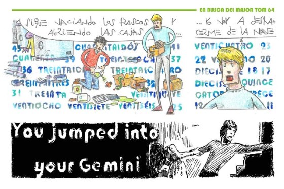 Tira 64 de “En busca del Major Tom”, del dibujante leonés Alberto D. Nogal. Una historieta gráfica de 28 páginas, ejecutada en técnica mixta con lápices de colores y ordenador, y concebida para la colección ArteBowie de Carlos Luxor. Cada semana publicamos una nueva tira, hasta 78 en total, de esta historia medio pop, medio naif, inspirada en el Major Tom, el personaje ficticio creado por David Bowie, en Space Odity, la mítica canción de 1969 en la que narra el viaje iniciático de este astronauta, rumbo a las estrellas.