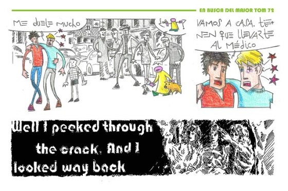 Tira 72 de “En busca del Major Tom”, del dibujante leonés Alberto D. Nogal. Una historieta gráfica de 28 páginas, ejecutada en técnica mixta con lápices de colores y ordenador, y concebida para la colección ArteBowie de Carlos Luxor. Cada semana publicamos una nueva tira, hasta 78 en total, de esta historia medio pop, medio naif, inspirada en el Major Tom, el personaje ficticio creado por David Bowie, en Space Odity, la mítica canción de 1969 en la que narra el viaje iniciático de este astronauta, rumbo a las estrellas.