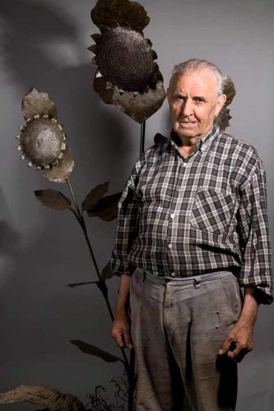 Por EDUARDO ARROYO.— Tras el fallecimiento del escultor leonés Jonás Pérez el pasado 1 de noviembre de 2017, a los 85 años de edad, reproducimos el texto que escribió el artista Eduardo Arroyo —su «vecino» en el pueblo de Robles de Laciana— para el catálogo titulado «Jonás Pérez: El primitivismo poético» (ILC, Diputación de León, 2011), editado con motivo de la exposición homónima que pudo contemplarse en el Centro Leonés de Arte (CLA) entre diciembre de 2011 y febrero de 2012. / Con fotografías de Amando Casado.