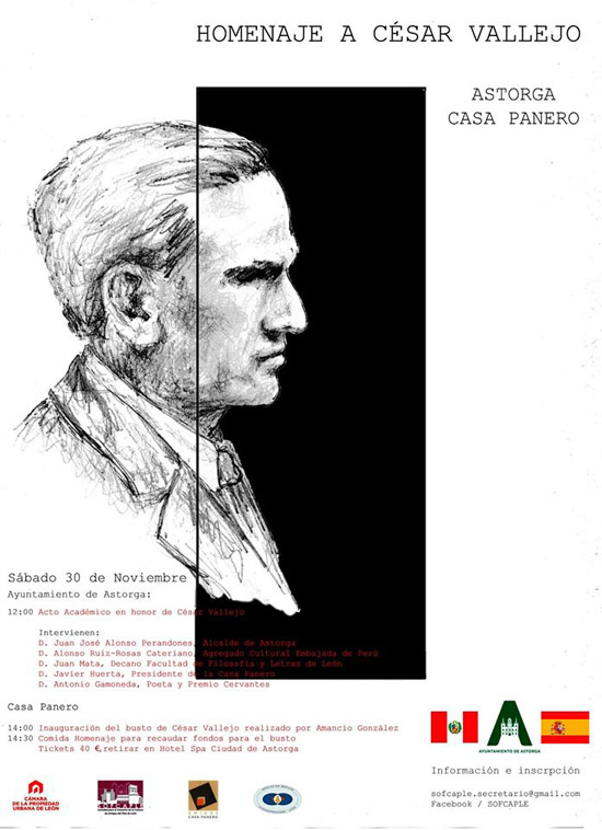 Por ELOÍSA OTERO.— El sábado 30 de noviembre se colocará en la Casa Panero de Astorga un busto dedicado a César Vallejo, realizado por el escultor Amancio González. Por la mañana habrá un homenaje al gran poeta peruano. Participarán, entre otros, el poeta Antonio Gamoneda y el agregado cultural de la Embajada de Perú en España, Alonso Ruiz-Rosas Catenario, junto al alcalde astorgano Juan José Alonso Perandones. Posteriormente, habrá una comida en el Hotel Spa Ciudad de Astorga, abierta a quienes quieran sumarse, con el objetivo de recaudar fondos para el busto (tickets: 40 €). / Reproducimos, además, un microrrelato sobre Panero y Vallejo.
