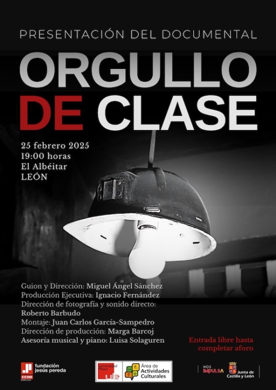 El próximo martes, 25 de febrero de 2025, a las 19 horas, se proyectará en el Teatro El Albéitar (Paseo de la Facultad) el documental “Orgullo de clase”, dirigido por Miguel Ángel Sánchez y producido por CCOO de Castilla y León. La entrada será libre hasta completar el aforo.