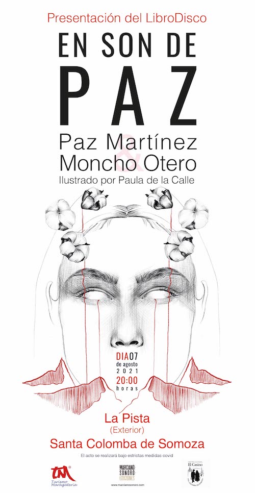 En son de paz (Marciano Sonoro Ediciones, 2021) recoge una selección de poemas de la leonesa Paz Martínez musicalizados por el cantautor madrileño, vinculado a la Maragatería, Moncho Otero. El librodisco, que también incluye un prólogo de Rafa Mora, está preciosamente ilustrado por la joven artista astorgana Paula de la Calle. La presentación-actuación tendrá lugar este sábado 7 de agosto en “La Pista” de Santa Colomba de Somoza (León) a las 20:00 horas.