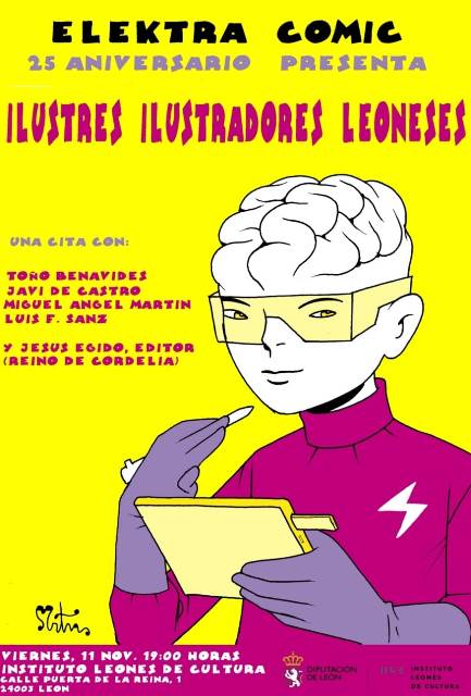 Por CAMINO SAYAGO.- Este viernes 11 de noviembre la Sala Región del Instituto Leonés de Cultura (Edificio Fierro. Calle Santa Nonia,3) será el escenario donde a partir de las 19:00 horas tendrá lugar la mesa redonda “Ilustres ilustradores Leoneses”. Un encuentro organizado por Elektra Cómics para celebrar sus 25 años de existencia, que reunirá a cuatro grandes de la ilustración en España: Miguel Ángel Martín, Toño Benavides, Javi de Castro y Luis F, Sanz. Les acompañará el periodista y editor Jesús Egido.