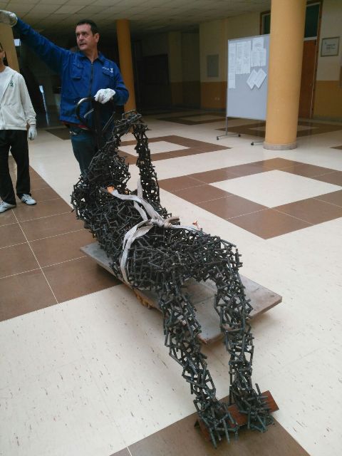 Por CAMINO SAYAGO.— El escultor leonés Amancio González interviene el hall de la Facultad de Filosofía y Letras de la Universidad de León con «Deconstrucción XI», una de las piezas de mayor formato de toda su producción. Ha optado por nuevos materiales que, como el hierro y el acero inoxidable, le permiten dibujar en el espacio y colgar en el aire volúmenes. La instalación, permanecerá expuesta hasta finales de noviembre.