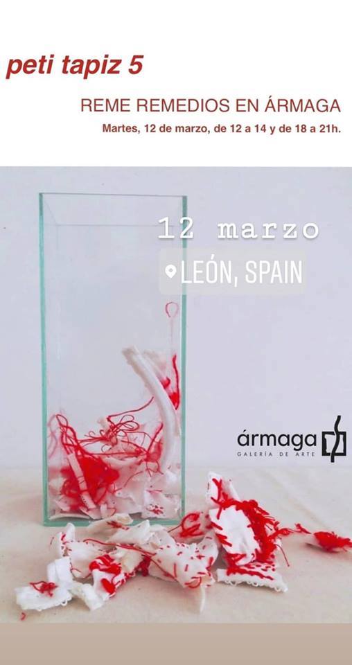 Este martes 12 de marzo, de 12 a 14 y de 18 a 21 horas en la galería leonesa Ármaga, la artista Reme Remedios concluirá una acción colaborativa iniciada en 2015: “Hilos de pintar para peti tapiz 5″. Será una jornada abierta de costura y té a la que estáis invitados, una actividad paralela a la actual exposición de dibujos de la artista afincada en El Bierzo.