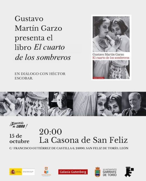 Este martes 15 de octubre, a las 20 horas, en La Casona de San Feliz de Torío (León) y dentro del programa “Bienvenido Mr libro”, tendrá lugar una conversación con el escritor vallisoletano Gustavo Martín Garzo en torno a su última obra, “El cuarto de los sombreros”. El acto está organizado por Factor Espacio San Feliz.