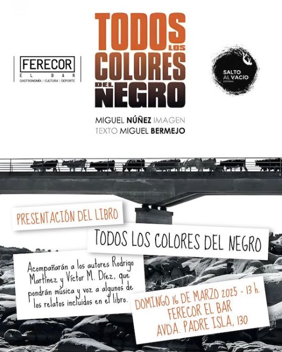 El fotógrafo Miguel Núñez y el escritor Miguel Bermejo presentan en León el libro Todos los colores del negro (Salto al vacío, 2025), su alianza de imágenes y textos para intentar atrapar un momento de cambio radical. Será el domingo 16 de marzo, a las 13 horas, en Ferecor, el Bar (Av. Padre Isla 130). Junto a los autores, participarán en el acto con palabra y música Víctor M. Díez y Rodrigo Martínez.