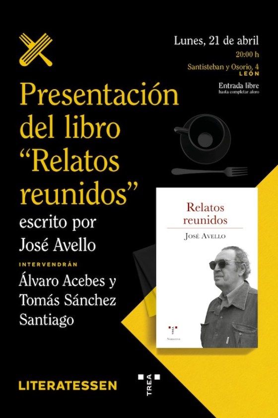 Este lunes 21 de abril, a partir de las 20 horas, la nueva librería leonesa Literatessen acogerá la presentación del libro ‘Relatos reunidos’ (Ediciones Trea), del fallecido escritor asturiano José Avello. Intervendrán en el acto los escritores Álvaro Acebes y Tomás Sánchez Santiago.