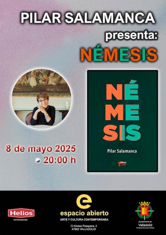 Este jueves 8 de mayo, a las ocho de la tarde, la poeta y novelista vallisoletana Pilar Salamanca presentará su último libro de poemas, ‘Némesis’, en la sala del colectivo artístico Espacio abierto (C/ Alonso Pesquera, 4, local), en Valladolid.